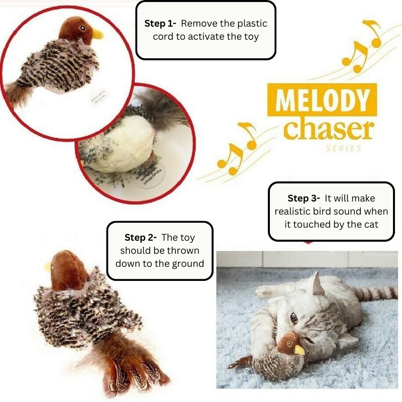 With every touch, the toy comes to life, flapping its wings and chirping just like a real bird. This interactive play encourages your cat’s natural instincts and offers endless entertainment.